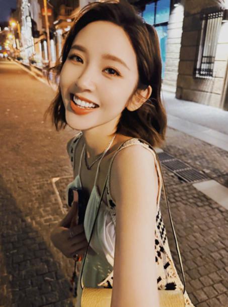 唐艺昕晒夜景美照 穿吊带裙开心比耶