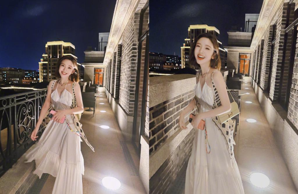 唐艺昕晒出一组夜景美照,她身穿白色吊带裙清纯可人,开心比耶似少女,笑容治愈活力满满。