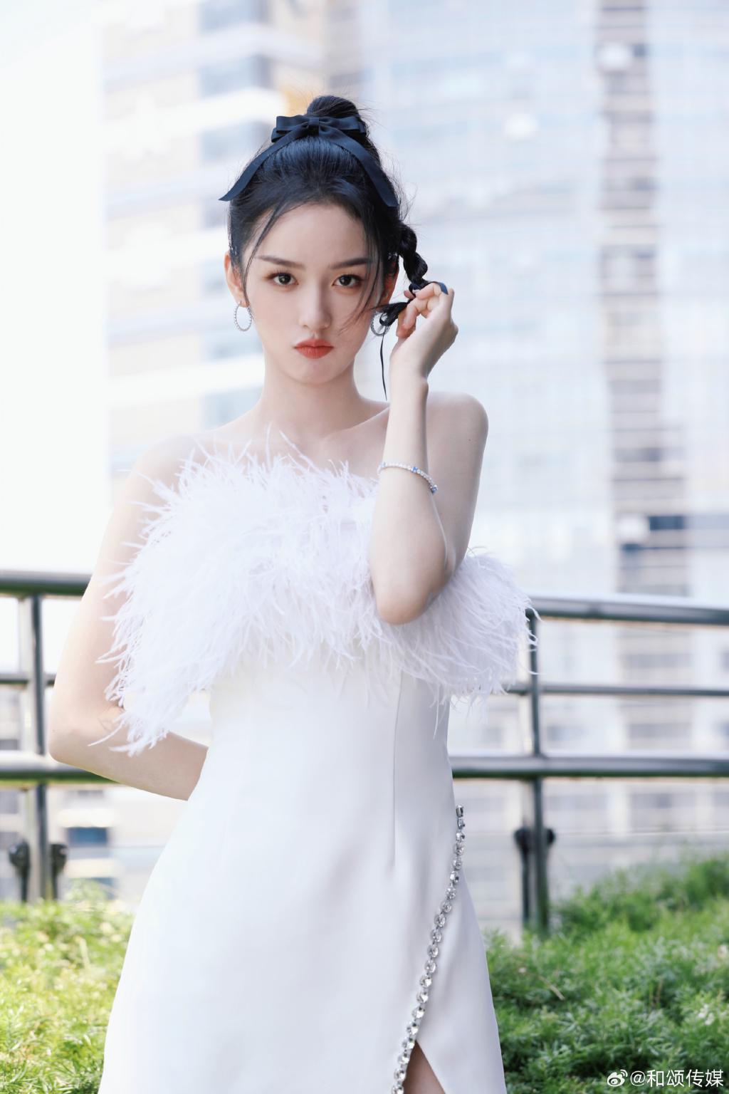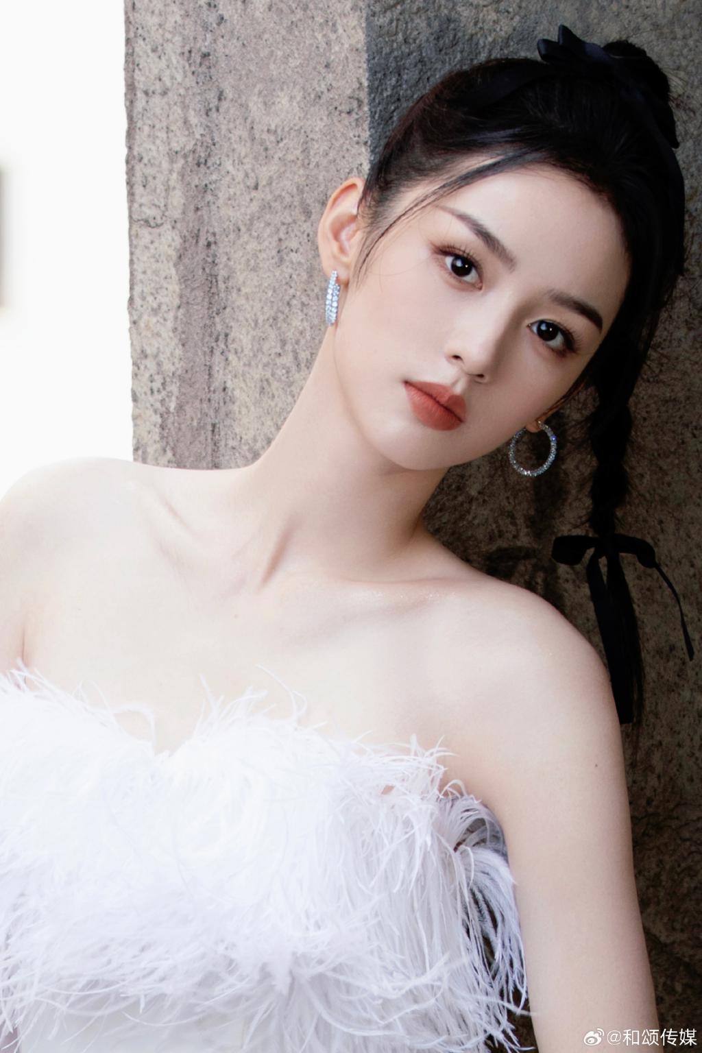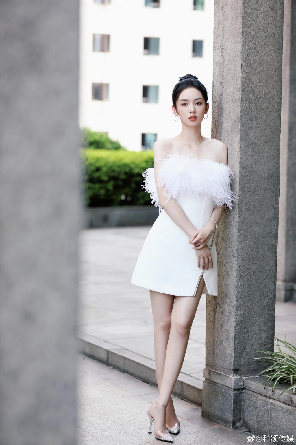 周也的一组美照曝光,她身穿白色羽毛抹胸裙,露出香肩美腿,肩颈线优越,高扎麻花辫俏皮灵动。