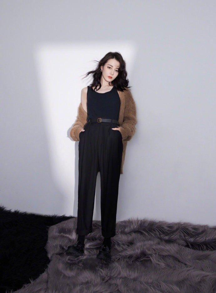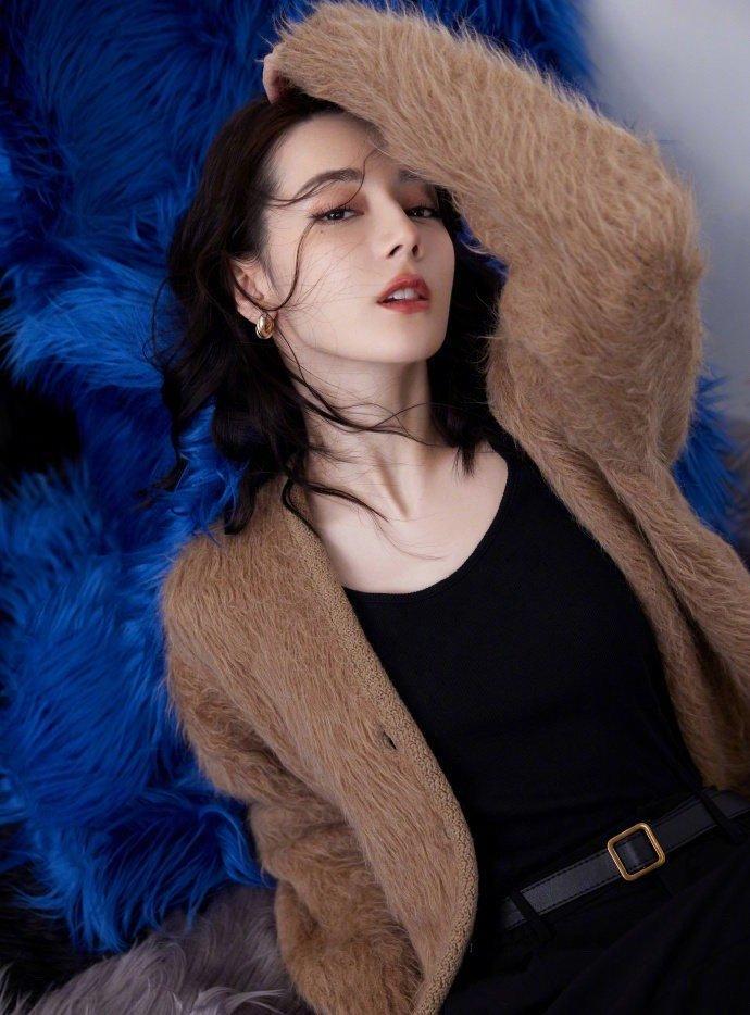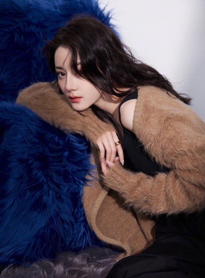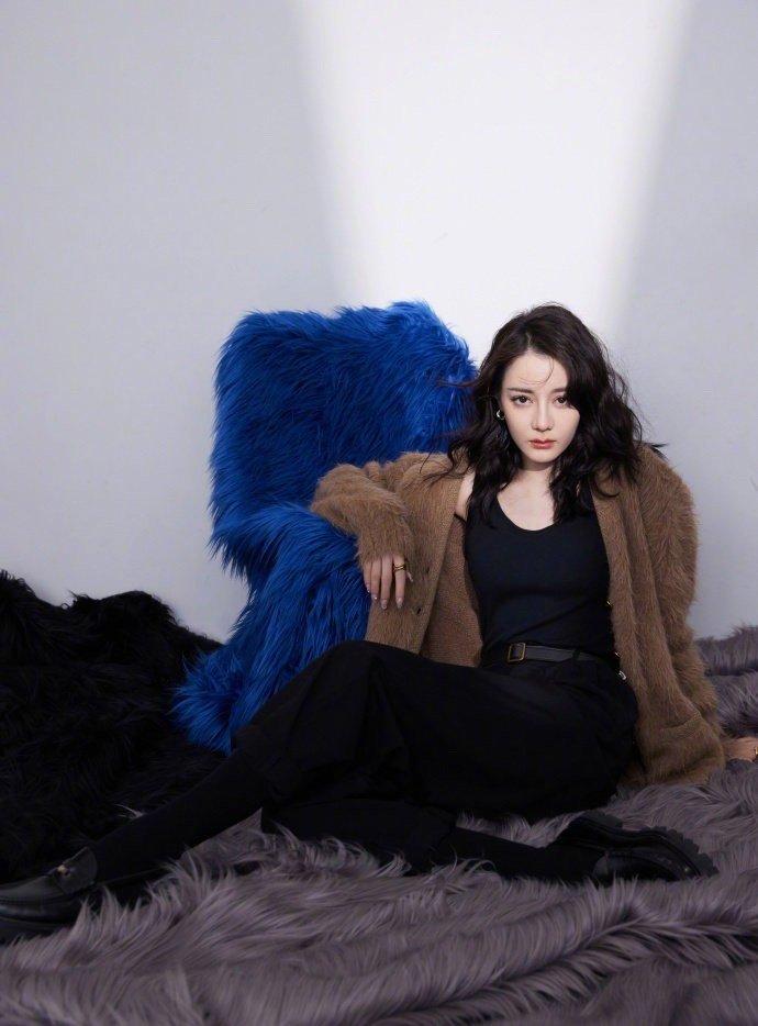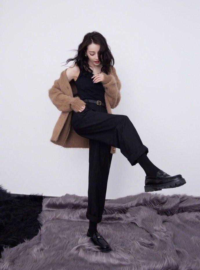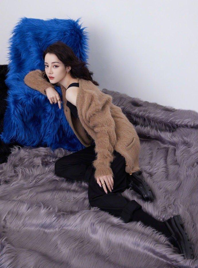 迪丽热巴一千零一夜晚会造型 咖啡色休闲毛衣开衫造型大片……