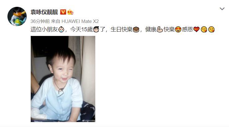 11月12日,袁咏仪在自己的社交平台晒出儿子魔童的童年照为他庆生,并配文“这位小朋友,今天15岁了,生日快乐,健康快乐感恩 ”。