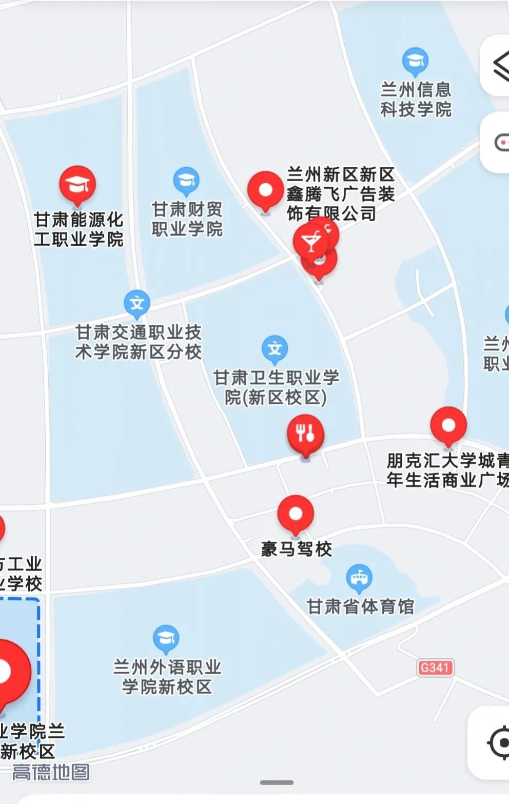 通过地图上的显示,可以清楚的看到职教园区对学校的规划是非常合理的,高校整整齐齐的林立在职教园区,道路通畅,交通便捷,周边的基础设施配套完善,有供大学生平时休闲娱乐的生活商业广场、文曲湖商业步行街,也有供大学生们锻炼身体和举行体育比赛等运动的甘肃省体育馆,也有着甘肃省职业技能公共实训中心供各高校学生在内进行实操训练,也有一座现代化的职教园区图书馆供学生查阅资料,学习交流。