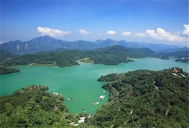 日月潭是玉山和阿里山间的断裂盆地经积水而成的一座高山天然湖泊,四周为高达千米的翠绿群山所环抱,林木葱郁,湖光山色,相映似画,奇景幽绝,被誉为“岛内仙境”,是台湾省八大胜景之一。