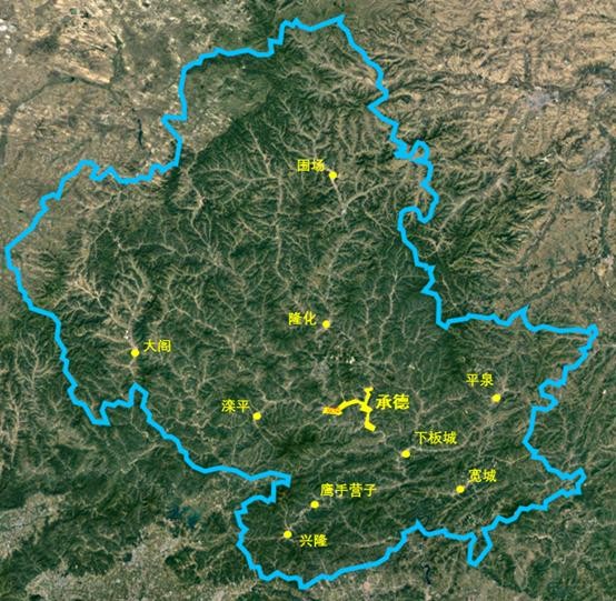 最后一张图显示了承德境内所有的城市,共计10座,除营子外都是县城和县级市。10座城市包括:中等城市一座【承德】,Ⅱ型小城市9座【鹰手营子】【平泉】【下板城】【兴隆】【滦平】【隆化】【大阁】【宽城】【围场】。
