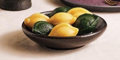 在中秋的代表性饮食松糕上也能发现朝鲜和韩国的差异。 南韩的松饼体积小,颜色多样,馅料很多,但朝鲜的松饼比南韩大3倍左右,主要放豆子。 在大米稀少的北方山区,土豆代替大米作为材料使用。