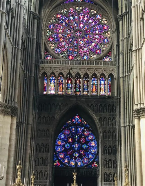 兰斯大教堂在法国历史上的地位举足轻重,其重要程度绝不亚于巴黎圣母院。前身建于公元400年,后又几经修建,1现存教堂为1211年重建,主教座堂内部长138.75 米,宽30米,高38米,是典型的“拉丁十字”式平面布局的哥特建筑。这里曾经是法国第一位国王克洛维接受洗礼的地方,而从1027 年开始一直到法国大革命,这里也是几乎每个法国国王举行他们加冕仪式的地方。其中最有名的一次莫过于,1429年圣女贞德护送查理七世来这里加冕。1991年被联合国教科文组织列为世界文化遗产。