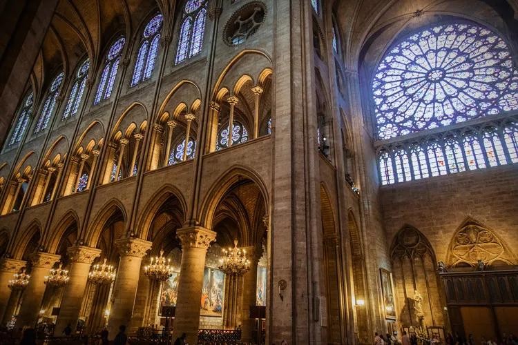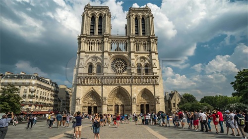 巴黎圣母院大教堂是一座位于法国巴黎市中心、西堤岛上的教堂建筑,也是天主教堂巴黎总教区的主教座堂。 巴黎圣母院约建造于1163年到1250年间,整座教堂在1345年全部建成,历时180多年。总长约127米,总宽约48米,总高达96米,总建筑面积达5500平方米,总占地面积达6000平方米,西立面置有两座钟塔,高约69米;圣坛外有标志性尖塔,高96米。与巴黎市政厅和卢浮宫隔河相望,法国首都最悠久和最具象征意义的纪念碑之一、欧洲最著名的哥特式大教堂之一,1862年,巴黎圣母院被法国历史古迹委员会列入法国遗产纪念碑清单。1991年,联合国教科文组织将其列入世界遗产名录,法国及欧洲文学文化地标建筑。巴黎圣母院是世界上第一座完全意义上的哥特式教堂,建筑本体的雕刻艺术和绘画艺术及堂内珍藏的大量艺术珍品具有极高的历史文化价值和蜚声中外的世界声誉。2019年4月15日发生火灾,预计重建工作将于2024年年底完成,即便完成再也不是以前的样子了。