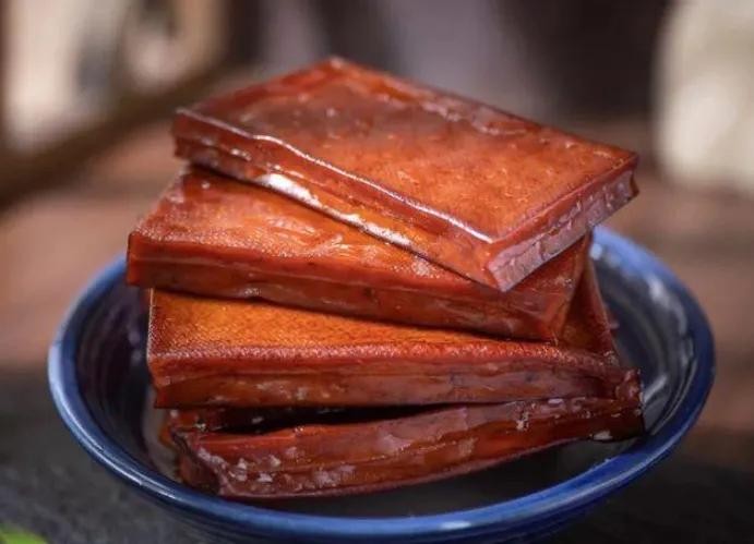 4. 平江酱干:源于岳阳市长寿街,经多道工序制成,乌黑油亮,耐嚼爽口 。