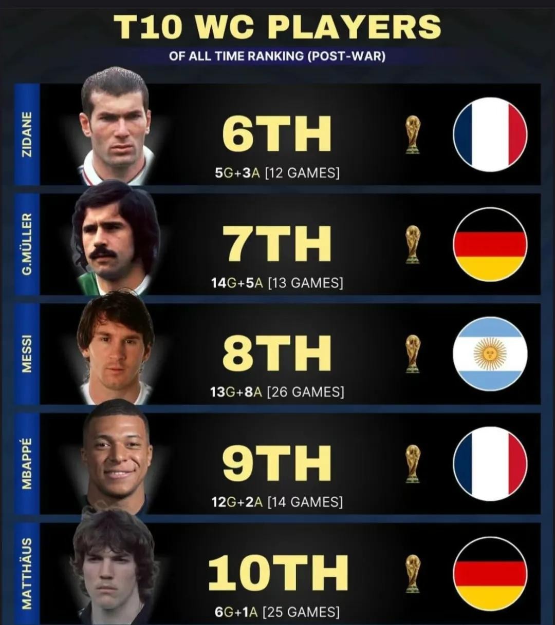 世界杯历史上,有过夺魁经历的球员有471人,但论成就、球技、足坛地位和影响力,这10人最强!