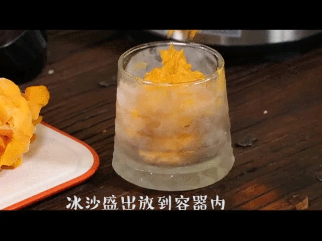 2.冻好的芒果块和切好的芒果放入搅碎机,倒入5g陈醋,通电打成冰沙
