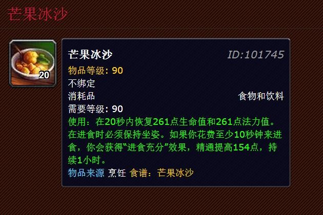 这样看来,用芒果冰沙来形容我们的霜狼领袖杜隆坦真的是再合适不过啦!吃完美味的芒果冰沙就能在一个小时中精通提高100+!可以吃完后幸福满满的去打怪啦~