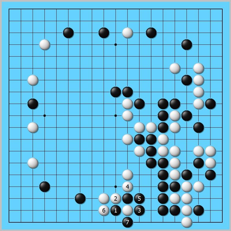 实战图一:黑1挖,时机很好,有人说这是妙手,但这只是试应手,不过时机拿捏得很好。