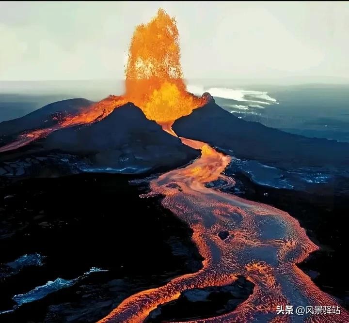 4、基劳维亚火山,位于夏威夷群岛,海拔 1277 米。在夏威夷那岛上,它也挺活跃。它这一喷,就把夏威夷那地方整得老有特色了。