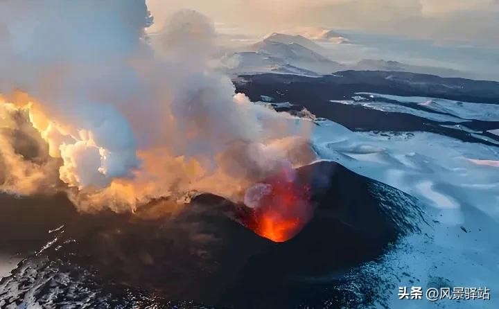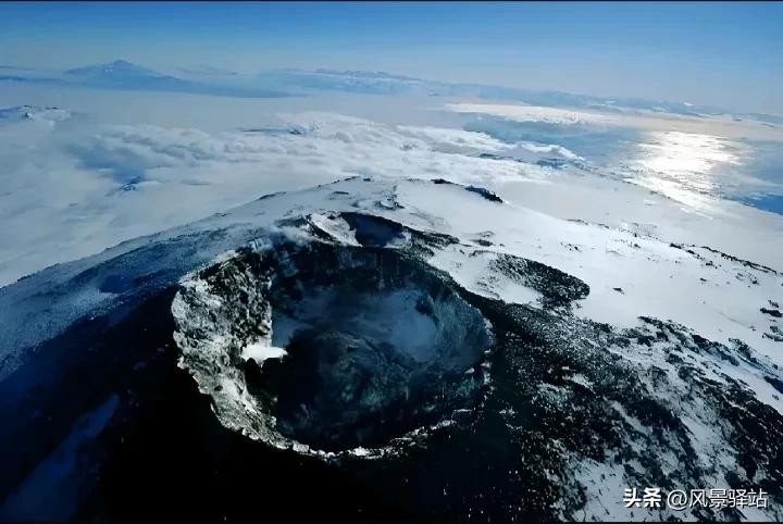 5、埃里伯斯火山,位于南极洲,海拔 3794 米。在南极那地方,它老有名了。因为它那地方特殊,对南极的生态和天气啥的影响可大了。