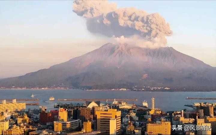 3、樱岛火山,位于日本,有北岳、中岳、南岳,北岳海拔 1117 米,中岳海拔 1060 米,南岳海拔 1040 米。在日本那也是老爱喷的火山,以前喷的时候对当地的城和人都有威胁。