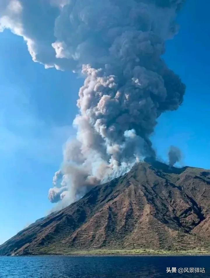 2、斯特龙博利火山,位于意大利,海拔 924 米。这火山可老活跃了,不少地质学家都上那去研究。它喷的时候还有点规律,能猜个差不多。
