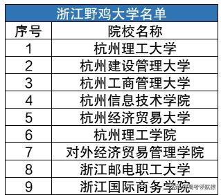 以下便是被人民日报曝光的在浙江的野鸡大学的名单,可以看到,有杭州理工大学、杭州建设管理大学、杭州经济贸易大学等。