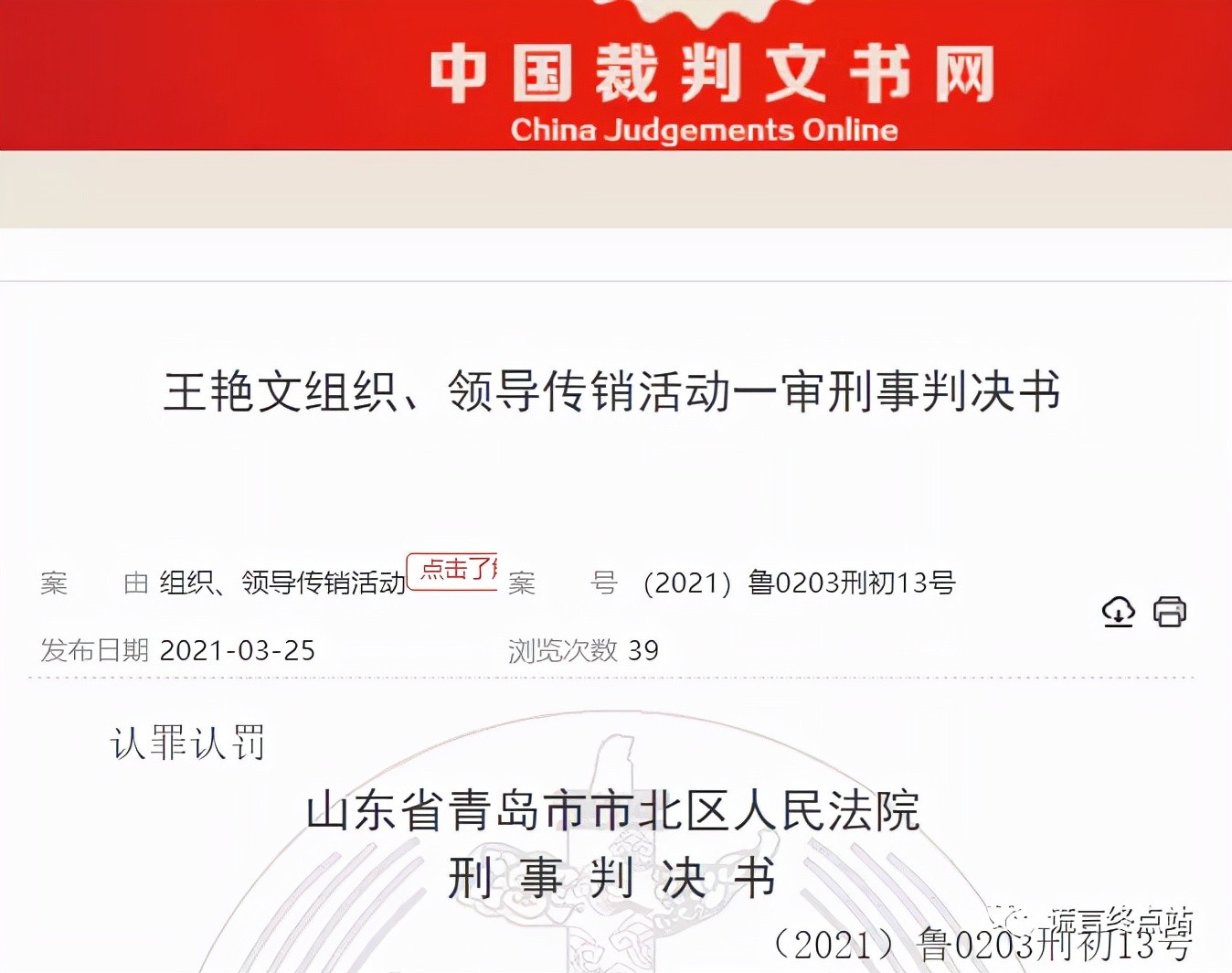 2021年12月16日,裁判文书网公开了一则“民事判决书”: