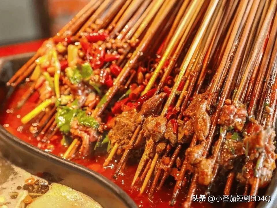 串串香是重庆的一种特色小吃,以其方便快捷、价格实惠而受到许多人的喜爱。它的特点是将各种食材串在竹签上烤制而成,配以特制的调料和辣椒酱,味道麻辣可口。在重庆的夜市和小吃街可以品尝到这道美食。