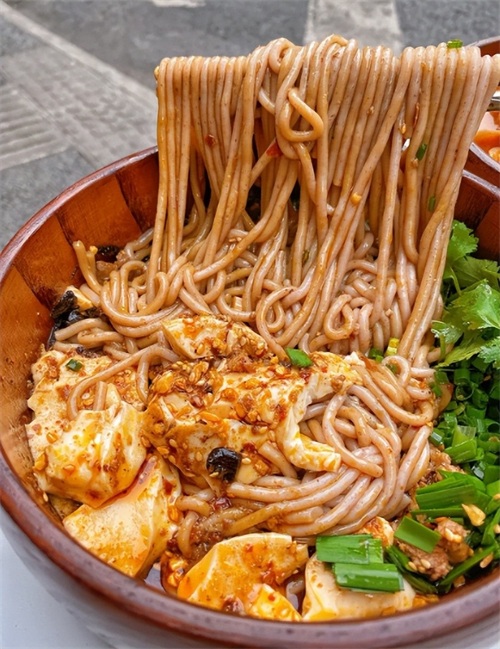 9. 甜水面:甜水面是成都的一道传统小吃,以面条和芝麻酱为主要原料制成。这道菜的特点是面条细软有弹性,芝麻酱香浓可口,口感甜润。甜水面起源于清朝末年,如今已成为成都人喜爱的一道美食。