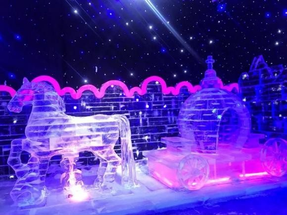 常州嬉戏谷“冰雪奇境”占地近两千平方米,一进入冰雪场里,入眼皆是粉妆玉砌,一派冰雪尘封景象。南瓜马车、CC公主、冰河世纪、冰冻迷宫......这些经典雪中元素都以冰雕的形式出现在冰雪奇境里,美轮美奂,如同身处冰雪童话。