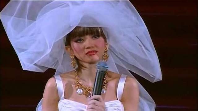 “我是一个歌手,也是一个演员,我不是第一次穿婚纱,但是每次穿婚纱都不属于我,我拥有什么?我拥有的是你们(歌迷),但是我在等,我在等刘德华,他是独身主义者”!