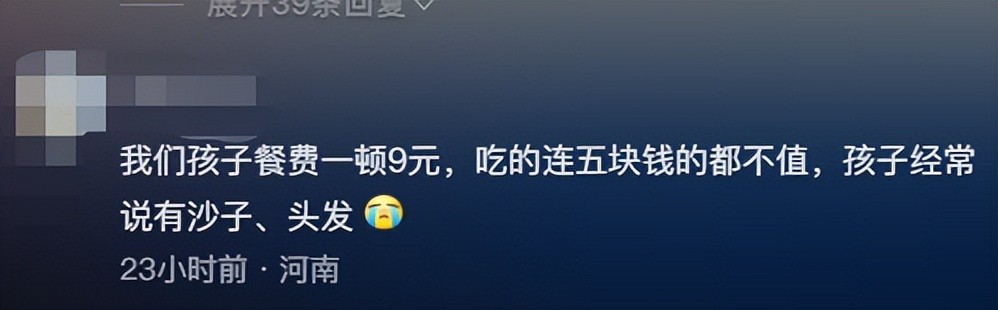 我们孩子餐费一顿9元,连5块钱都不值,孩子经常说有沙子、头发。