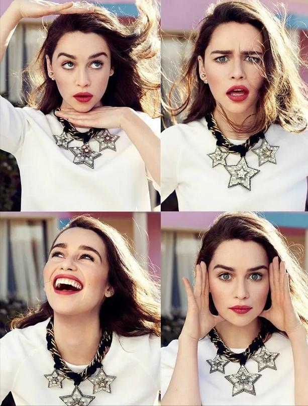 剧中的艾米莉亚总是让我们觉得她温柔可爱。事实上,她也是生活中一个完整的女人。她偶尔也会搞怪大笑,偶尔也会