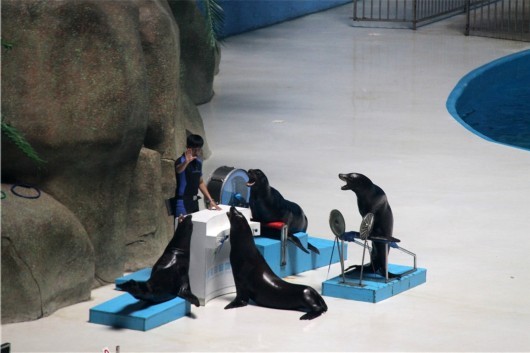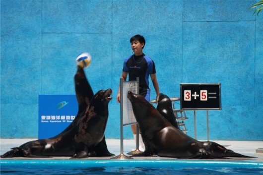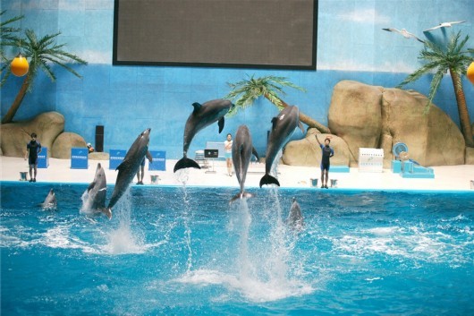 在海洋剧场里有幽默滑稽的海狮表演、惊险刺激的海豚表演、憨厚可爱的海象表演、浪漫唯美的白鲸表演,四种海洋动物同台演出,上演八头海豚高空跳跃、浪漫骑士、激情冲浪、呼啦圈大赛、尾鳍拍球送大礼、高空顶球、人豚共舞、海狮抢凳子、海狮算数、海狮排球赛、海狮音乐会、海狮空中360°翻转、海象才艺大PK、人鲸共舞等令游客欢欣雀跃的精彩表演。