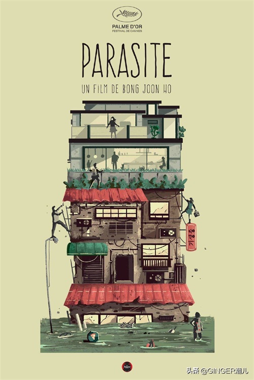 加拿大艺术家Marie Bergeron设计的海报在结构上无疑十分惊艳,通过建筑突出了阶级矛盾。