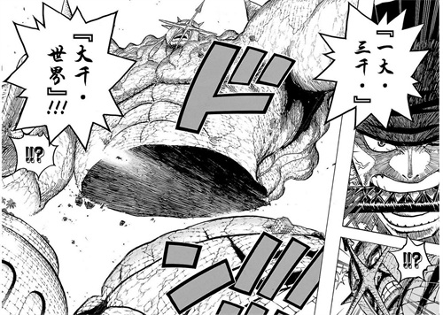索隆斩杀琵卡时喊得吟唱语,说的也是这件事:“九山八海,为一世界,无坚不破,千界聚之为小千世界,三乘其上,一大·三千·大千·世界!”。