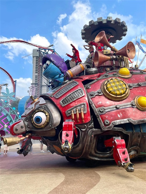 在律动天地,游客可以挑战世界级的垂直过山车,体验从百米高空瞬间垂直下落的极致刺激;而在尖叫地带,十环过山车以其惊人的环数和高速旋转,为勇敢者带来了前所未有的心跳加速体验。此外,摩托过山车、U型滑板、超级大摆锤等顶级游乐设施,更是让每一位游客都能找到属于自己的冒险与乐趣。