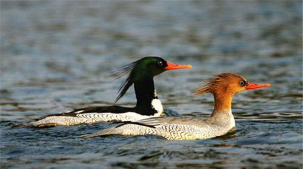 中华秋沙鸭,这是我们国家所特有的一种鸟类,这种鸟儿主要生活在湍急的河流和宽阔的湖泊之中,它们擅长潜水和捉鱼,是名副其实的潜水将和捉鱼小能手。