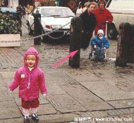 这一张无腿女人的照片,被网友评为世界十大禁止恐怖照片之一。一位母亲在街上为自己的女儿拍摄照片,当把照片拿回家之后,她发现在女儿后面的人群中,有一个女人看起来非常的奇怪,只见那个女人面色惨白,正在死死的盯着自己的女儿,而且完全看不到腿,就如同漂浮再空中一样。