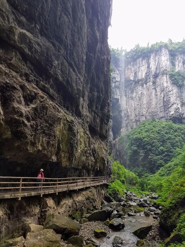整个景区只有一条步道,先后穿过青龙、神鹰天坑,从天龙、青龙、黑龙三座天生桥下走过。