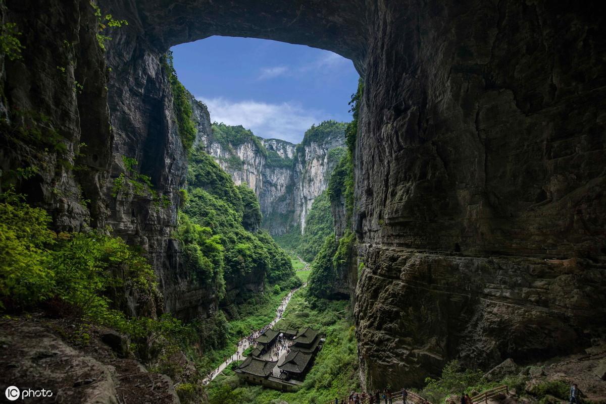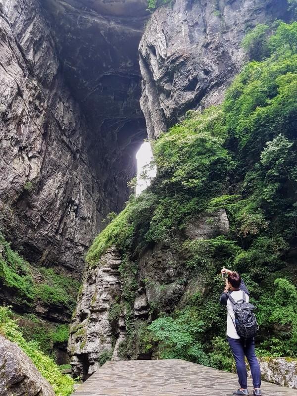 从景区电梯直达天坑底部,便被眼前的天龙桥所震撼!有别于一望无际的大山大水,站在天坑里更有种地底窥天的感觉,那股气势是迫在眼前的,体会到人与天地的悬殊距离。