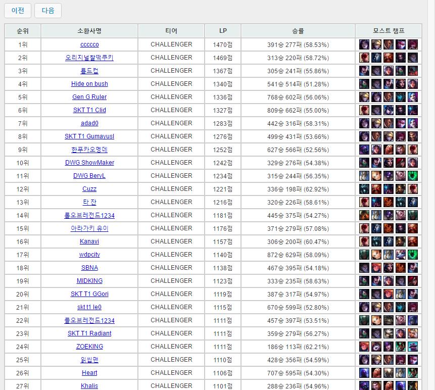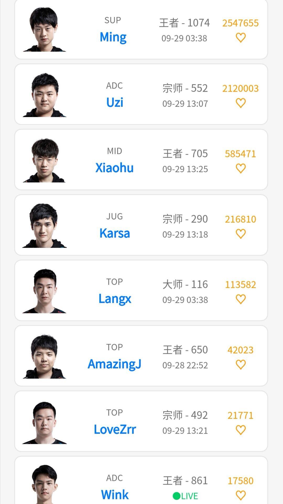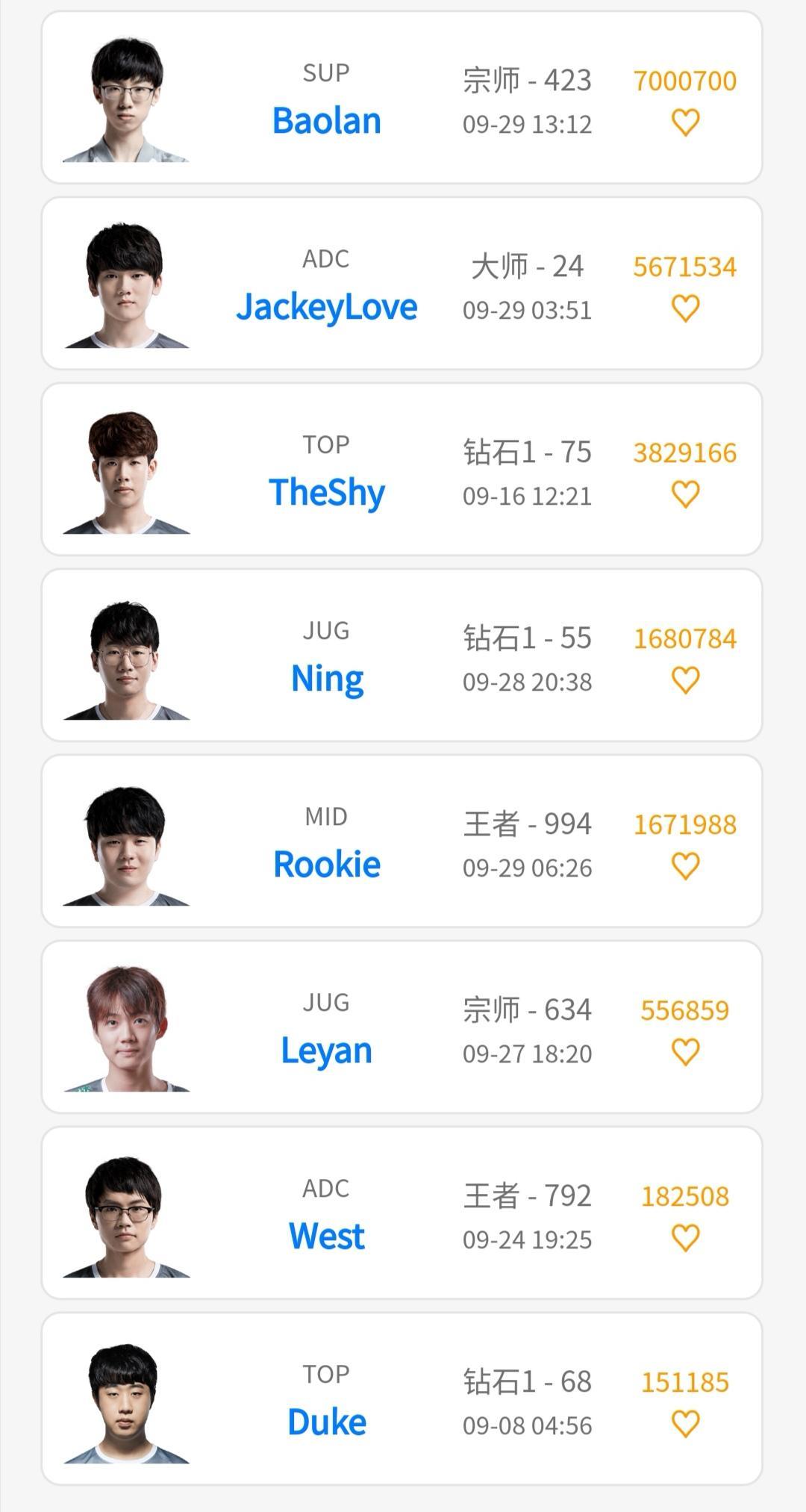 因此,韩服的排名也是客观评价一个职业选手能力的重要因素。截止29号的排名如下;