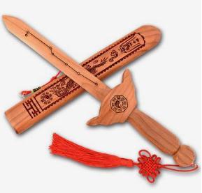 古代尊桃树为“仙木”,认为它可以驱邪制鬼,桃木剑是道教的一种法器,在中国传统习俗中也被认为有镇宅、纳福、辟邪等作用。在制作上,通常取天然桃木,纯手工雕刻,一般认为,桃者为五木之精,亦称仙木,故有辟邪镇宅的作用,桃木剑则因而具有了这方面的能力。