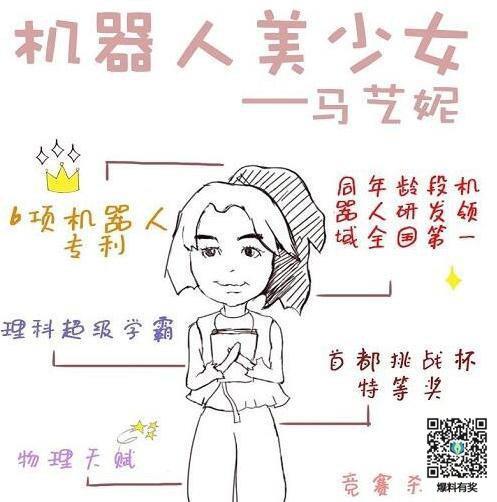 马艺妮,20岁,出生于1997年5月3日,清华大学物理系大二在读学生。手握六项机器人国家专利。