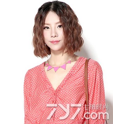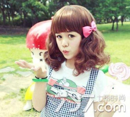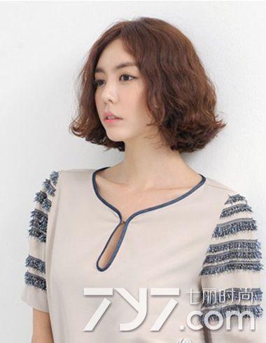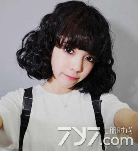 蓬松感十足的玉米烫短发特别适合发量较少的mm,整齐的刘海搭配两边蓬松的短发,既修饰出一张可爱小脸又萌呆可爱。