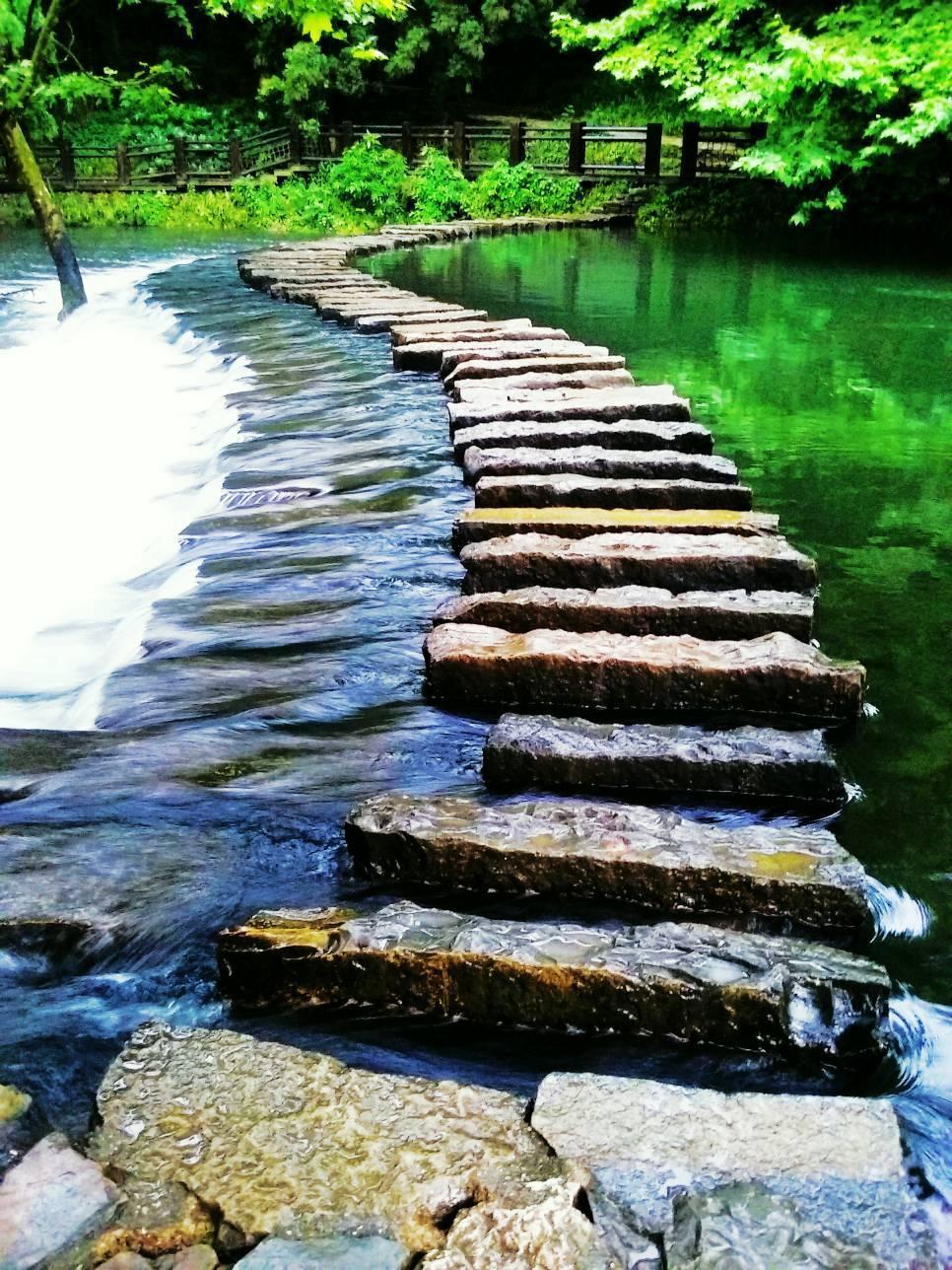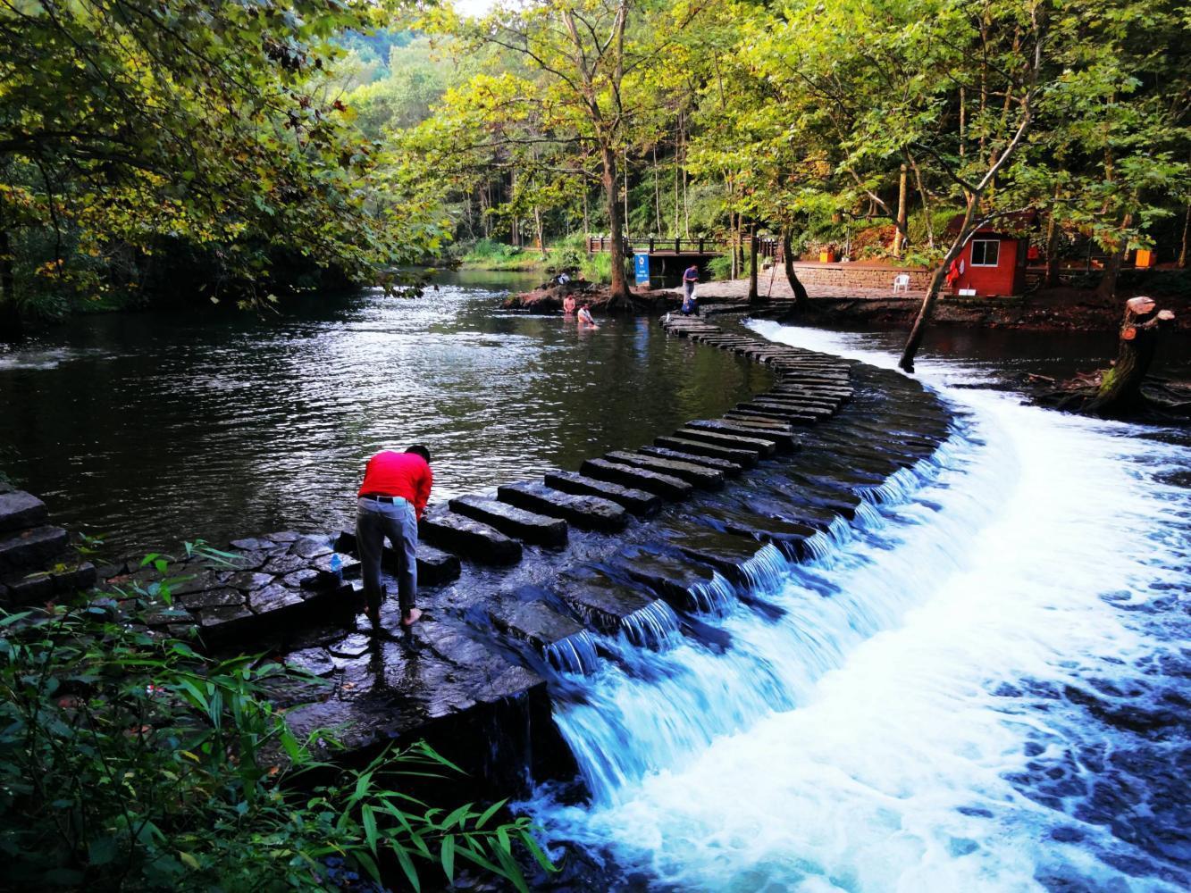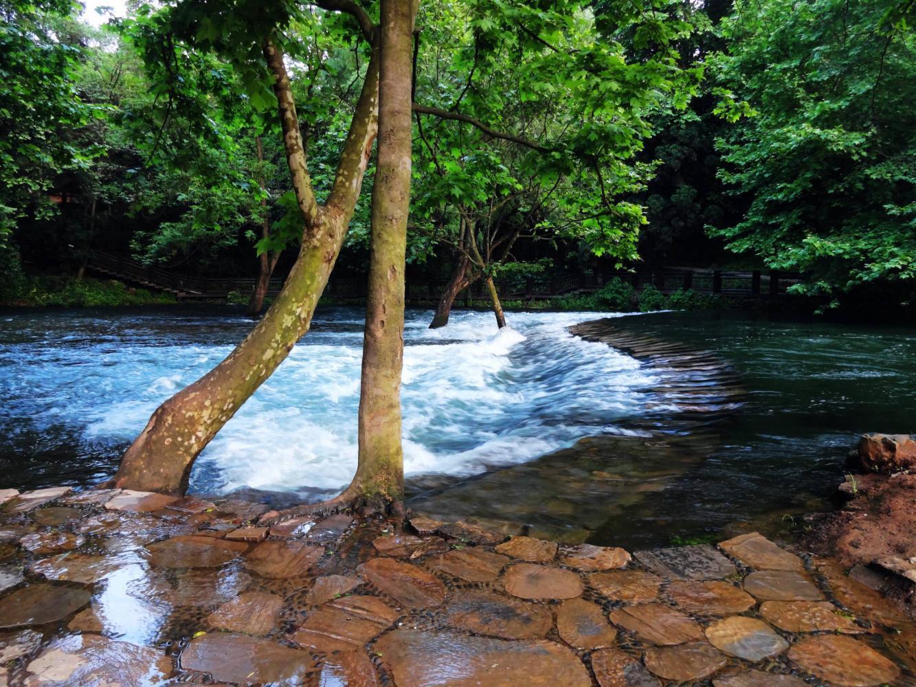 整条山谷突发显得郁郁葱葱,清澈见底的河流在树林中蜿蜒而过,河中能见到成群的小鱼,游客可以一边倾听着山谷中鸟叫虫鸣,一边欣赏这潺潺的流水,在这里,让人忘却了城市的烦嚣,多了一份悠闲的气质。