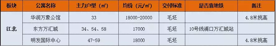 江北板块的这些公寓充分发扬了“小面积,低总价”的特点,也是公寓投资者最热爱的板块之一。