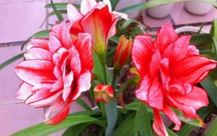 朱顶红也是家庭经常种植的盆栽花卉,叶片形状看上去和君子兰有些相似,但要比君子兰更好养,开花特别漂亮。
