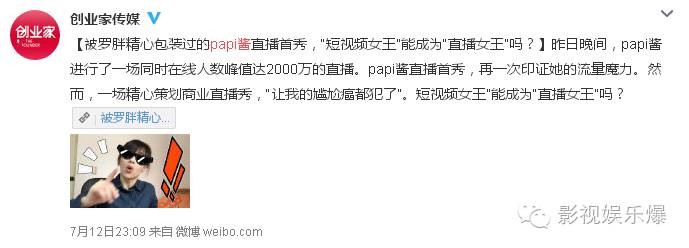 Papi酱直播上演“北京瘫” 揭秘播放过亿实况!