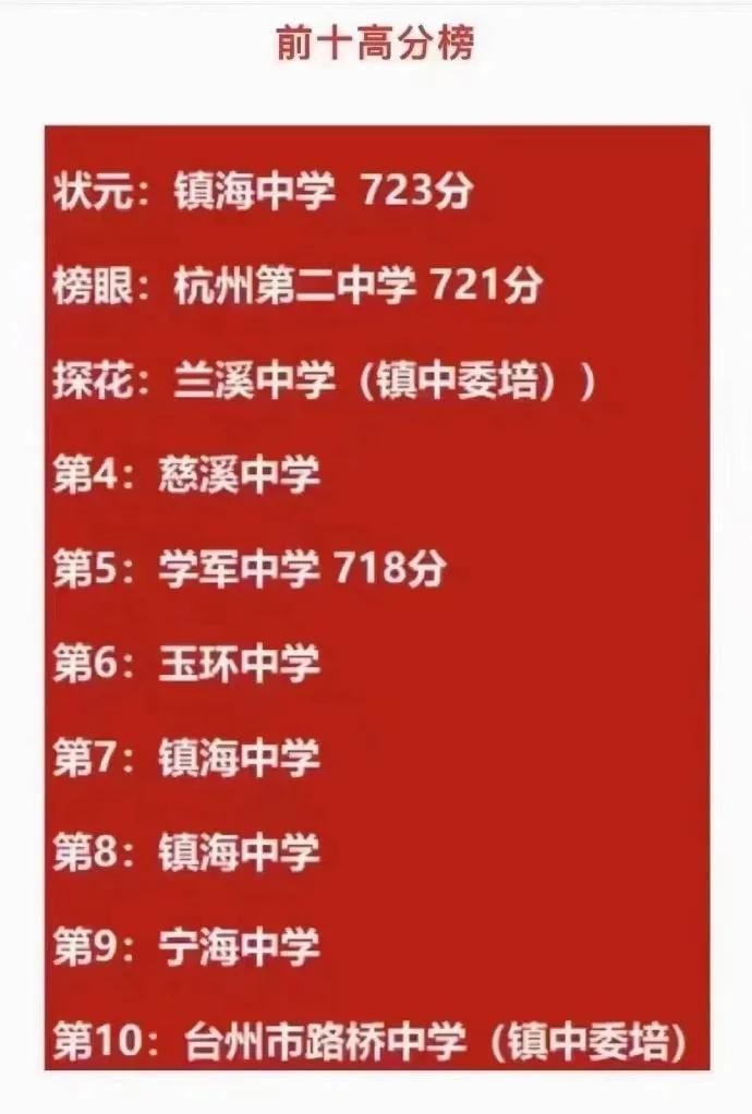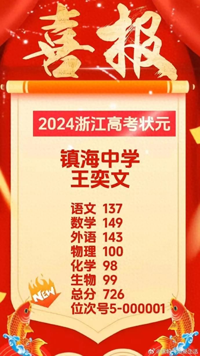 2024年浙江省高考状元,王奕文726分,最近5年状元都在700分以上