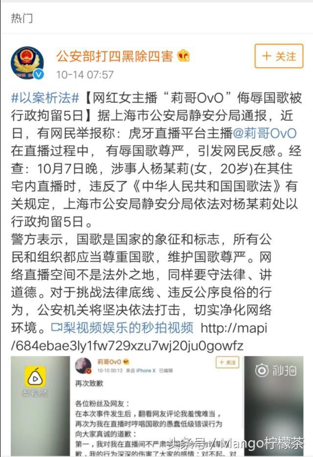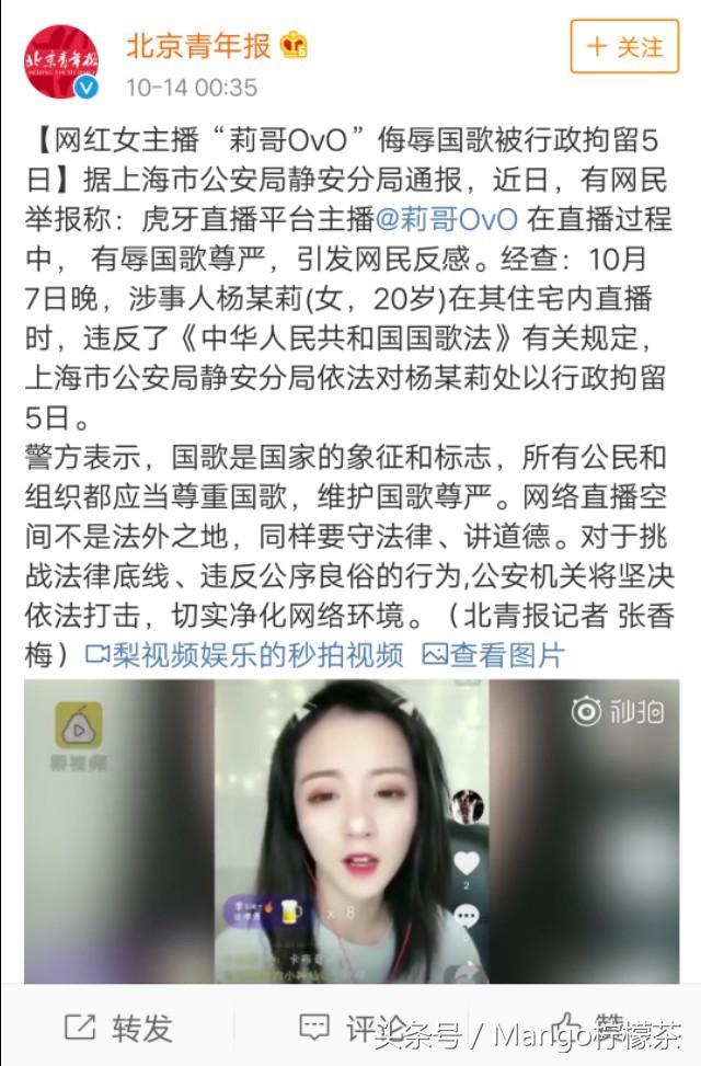 网红女主播“莉哥”事件有结果了!被行政拘留5日!