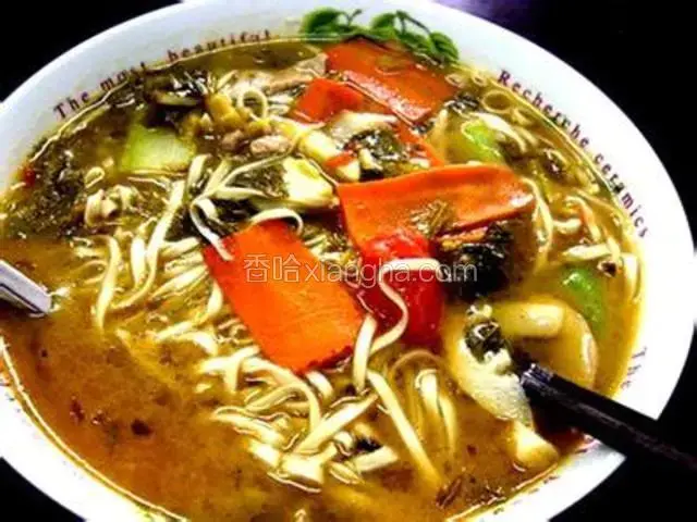 片儿川是浙江杭州地区一种著名的汉族传统汤面,面的浇头主要由雪菜、笋片、瘦肉丝组成,鲜美可口。已有百余年历史,最早由杭州老店奎元馆首创,其特色在于雪菜和笋片的鲜美,让食客吃后回味无穷,是杭州市民最喜爱的日常小吃之一。【香哈网】