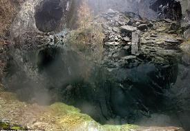 在英国大湖区国家公园中有一个19世纪初的采石场,后来这里被废弃之后,由于石洞与地点暗河相连,成为了许多潜水爱好者的探险地。有一天一名潜水者看着这个废弃采石场洞穴,在水面的倒影和洞穴组成了一个完美的人类骷髅头。