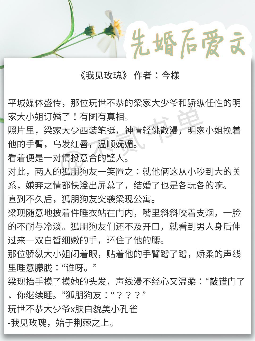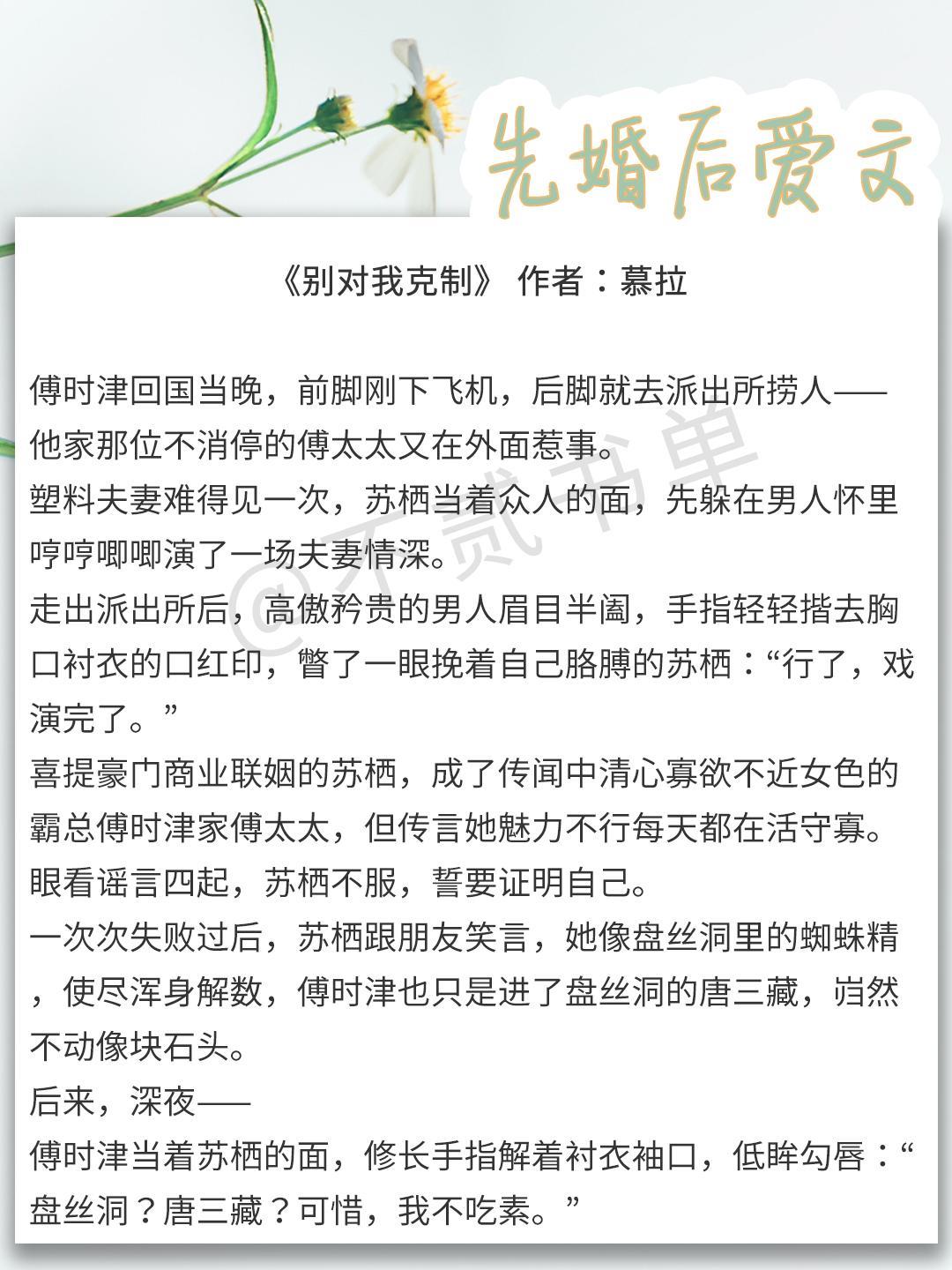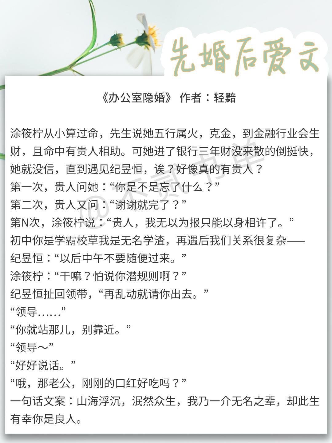 这一期就给大家推荐先婚后爱文,看看霸道男主如何拜倒在女主的石榴裙下~