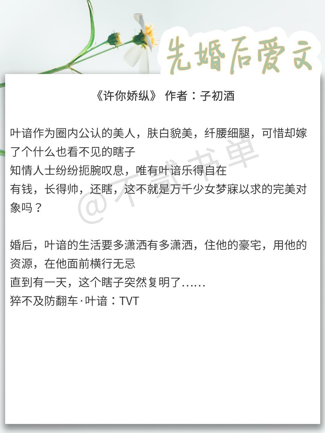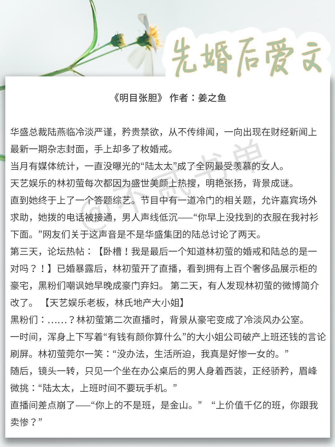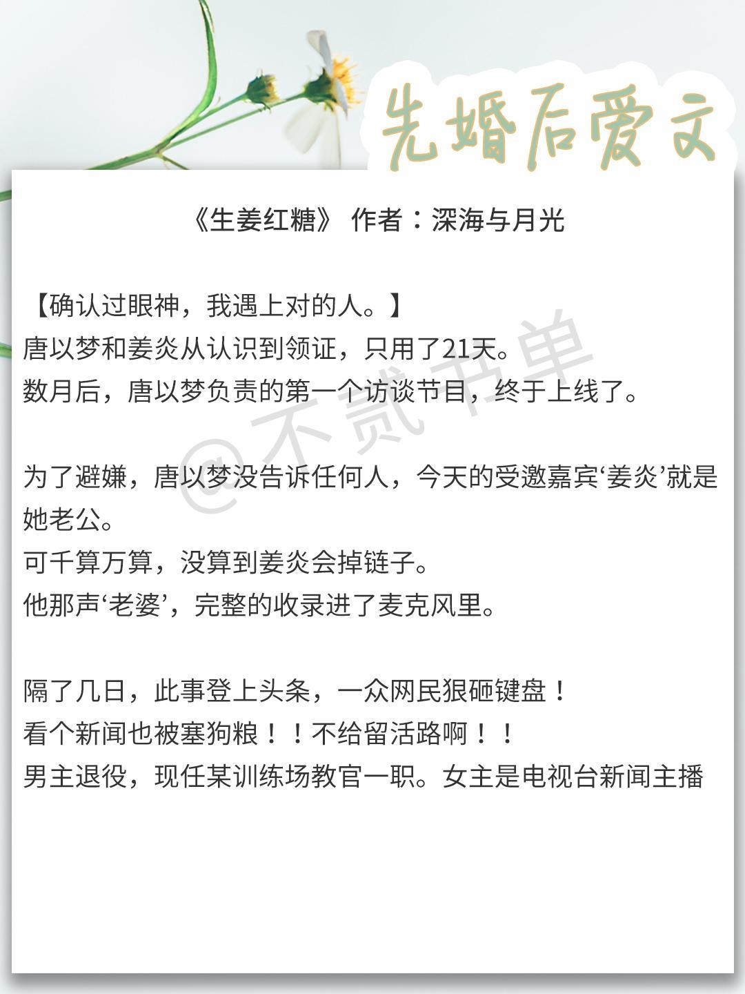 这一期就给大家推荐先婚后爱文,看看霸道男主如何拜倒在女主的石榴裙下~
